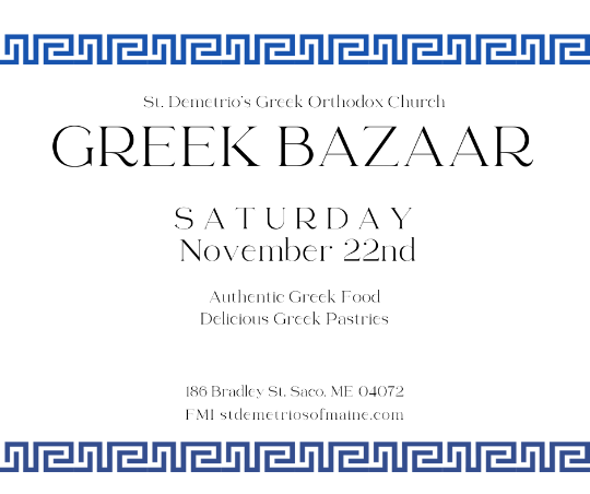 Authentic Greek Food and Delicious Greek Pastries! FMI please visit: stdemetriosofmaine.com/bazaar